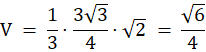 Oblicz objętość czworościanu foremnego wiedząc, że jego pole wynosi 3