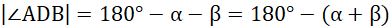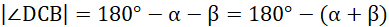 Kąt |∠DCB| jest kątem odpowiadającym do kąta 180° – α – β,