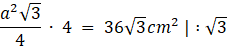 Pole czworościanu to iloczyn 4 i jednej ściany będącej trójkątem równobocznym, więc: