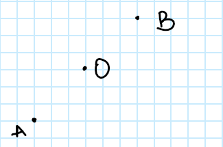 Punkt A jest symetryczny do punktu B względem punktu O (A jest obrazem punktu B w symetrii względem punktu O) jeżeli: