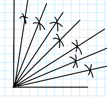 Narysuj kat prosty, podzielony na 8 równych części – kąty o mierze 11,25˚.
