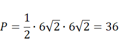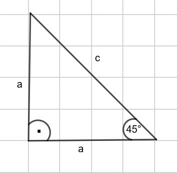 Najpierw zauważ, że ten trójkąt jest połową kwadratu, a przeciwprostokątna trójkąta jest jegoprzekątną. Następnie wiedząc, że długość przekątnej kwadratu o boku jest równa oblicz długość ramienia trójkąta i pole, które jest równe połowie iloczynu przyprostokątnych trójkąta.