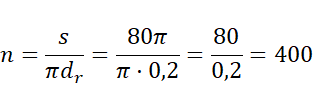 Wyznacz drogę (s) pokonano przez koło roweru jako obwód toru, po którym się porusza. Droga przejechana jest równa iloczynowi ilości obrotów (n) i długości obwodu koła rowerowego. Wyznacz z niego liczbę n.