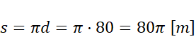 Wyznacz ilość obrotów wykonanych przez koło rowerowe o promieniu 20 cm, wiedząc, że rowerzysta poruszał się po torze w kształcie okręgu o średnicy 80 m.