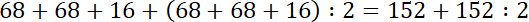 B. 68 + 68 + 16 + (68 + 68 + 16) : 2