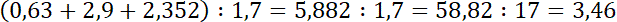 Dodaj do siebie podane liczby, a następnie podziel sumę przez 1,7.