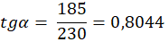 Aby obliczyć kąt α, skorzystaj z wartości trygonometrycznej tangensa. Następnie odczytaj miarę kąta z tablic wartości trygonometrycznych.