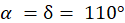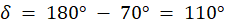 Kąt δ oraz kąt α są kątami wierzchołkowymi (mają wspólny wierzchołek oraz ich ramiona leżą na przecinających się prostych), a zatem mają równą miarę, co oznacza, iż: