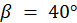 Kąt 40° oraz kąt β są kątami wierzchołkowymi (mają wspólny wierzchołek oraz ich ramiona leżą na przecinających się prostych), a zatem mają równą miarę, co oznacza, iż: