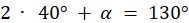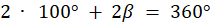 Kąt naprzeciw α ma (360° - 100°) : 2 = 130°. Wtedy: