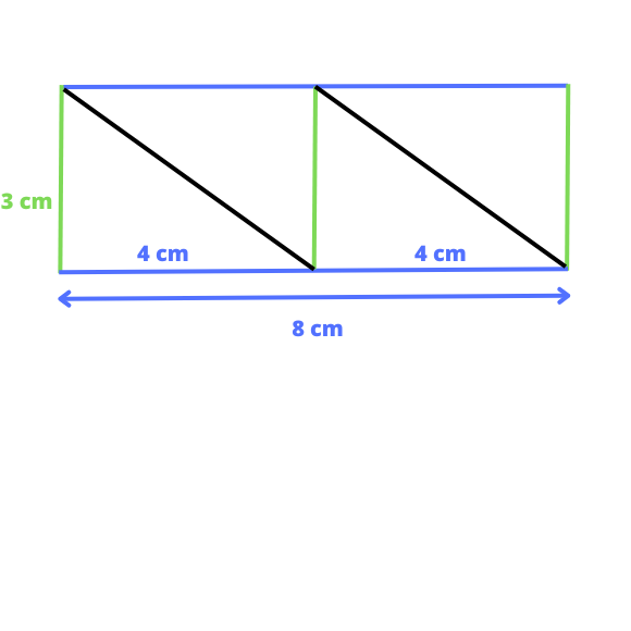 Długość niebieskiej przekątnej możemy obliczyć ze wzoru na pole trójkąta: