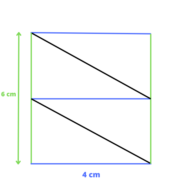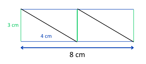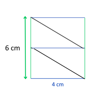 Przekątna rombu ma 6 cm, jego bok 5 cm, a jedna przekątna 4,8 cm. Romb został rozcięty wzdłuż jego przekątnych i podzielony na cztery trójkąty, z których następnie ułożono prostokąt. Podaj możliwe wymiary tego prostokąta.