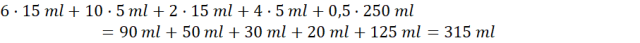 Oblicz sumę pojemności wszystkich składników, aby dowiedzieć się, ile mililitrów będzie miał gotowy napój.