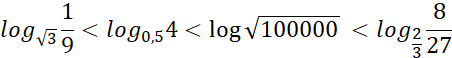 Dokonano obliczeń, używając znajomości działań na logarytmach i uszeregowano liczby rosnąco.