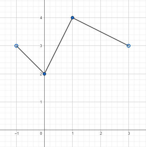 Narysuj wykres o dziedzinie (-1; 3), a zbiorze wartości <2; 4>.