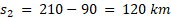 Dwa samochody wyjechały jednocześnie z miast A i B oddalonych od siebie o 210 km.. Oba poruszały się ze stałą prędkością i spotkały się w odległości 90 km od miasta A. Wiadomo, że jeden z samochodów poruszał się o 15 km/h szybciej niż drugi. Oblicz prędkość każdego z nich.