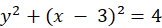 B. okrąg o środku w punkcie (3, 0) i promieniu 2