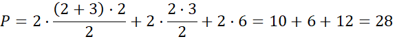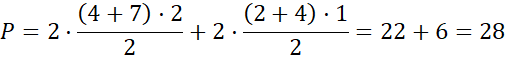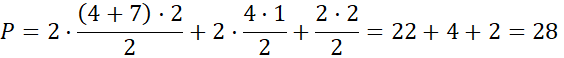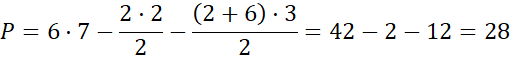 Możesz podać inne sposoby podziały na mniejsze wielokąty. Zauważ, że niektóre identyczne figury występują w wielokącie dwa razy, więc możesz zastąpić dodawanie takich samych pól, mnożeniem przez ilość takich figur. Pole prostokąta to iloczyn jego długości i szerokości, pole trójkąta otrzymasz, mnożąc przez jedną drugą jego przyprostokątne lub podstawę i wysokość, która na nią pada. Z kolei pole trapezu to połowa iloczynu wysokości i sumy długości podstaw.