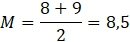 Najpierw wypisz liczby rosnąco. Następnie zauważ, że mediana zmieni się, jeżeli dopiszemy liczbę mniejszą od 9, czyli 8.