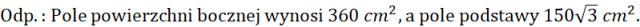 Mając krawędź podstawy 10 cm o krawędź boczną 13 cm, oblicz pole podstawy i pole powierzchni bocznej ostrosłupa prawidłowego sześciokątnego.