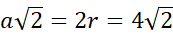 Przekątna kwadratu to średnica koła, więc: