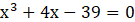 Wylicz współrzędne wierzchołków prostokąta o polu wynoszącym 39, jeśli dwa jego wierzchołki leżą na osi OX, a dwa pozostałe należą do paraboli