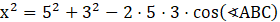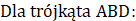 Korzystamy z twierdzenia jako sinusów dla trójkąta ABC. Korzystamy również z twierdzenia cosinusów dla trójkąta ABD. wyznaczamy długość x.