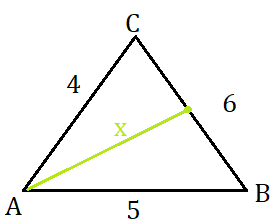 Wyznacz długość środkowej, prowadzonej w kierunku najdłuższego z boków trójkąta o bokach 6 cm, 5 cm i 4 cm.