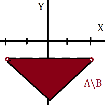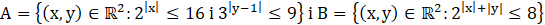 Wyznaczamy obszary, które opisuje zbiór A i B, a następnie wyznaczamy elementy wykresów, które się pokrywają oraz zbiór A bez tych elementów.