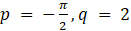Aby przesunięta o pewien wektor funkcja g przyjmowała wartości 1 dla tych samych argumentów, co funkcja f, ale nie pokrywała się z wykresem funkcji f, może zostać przesunięta jedynie w górę o 2 jednostki, wtedy 1 będzie jej wartością najmniejszą. Zatem q = 2. Następnie należy tak dobrać liczbę p, aby