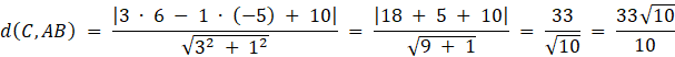 Odległość punktu C od prostej AB – długość wysokości opuszczonej z wierzchołka C: