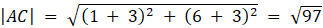 Długość boku AC trójkąta ABC wyraża się liczba niewymierna, wynosi ona