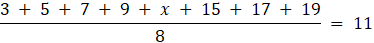 Średnia arytmetyczna ośmiu liczb: 3, 5, 7, 9, x, 15, 17, 19 jest równa 11. Wtedy: D. x = 13.