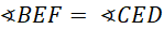Trójkąty CDE i BEF są przystające na mocy cechy kąt – bok – kąt, a więc mają taką samą powierzchnie.