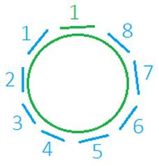 Rys. 2. Liczba możliwości zajmowania miejsc na pozostałych ośmiu miejscach przy okrągłym stole.