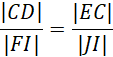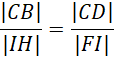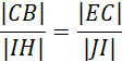 Na mocy cechy kąt-kąt-kąt trójkąty EBC oraz JHI są do siebie podobne (są to trójkąty równoramienne, ponieważ przekątne prostokąta przecinają się w połowie) zatem: