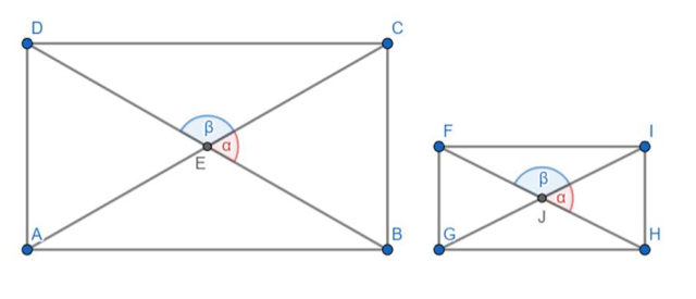 W tym zadaniu musisz wykazać, że prostokąty są do siebie podobne, jeżeli mają taki sam kąt ostry przecięcia swoich przekątnych.