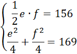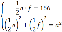 Ze wzoru na pole rombu oraz z faktu, że przekątne w rombie przecinają się w połowie pod kątem prostym (twierdzenie Pitagorasa):