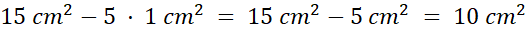 Oblicz jako pole równoległoboku o podstawie 5 cm i wysokości 3 cm minus 5 pól równoległoboków o wysokości 1 cm i podstawie 1 cm.