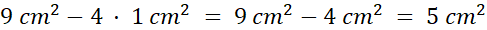 Oblicz jako pole równoległoboku o podstawie 3 cm i wysokości 3 cm minus 4 pola równoległoboków o wysokości 1 cm i podstawie 1 cm.