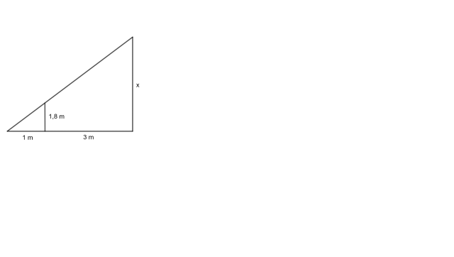 Wiedząc, że chłopak, mający 1,8 m wzrostu, stoi 3 m od latarni, a cień rzucany przez niego ma długość 1 m, określ wysokość latarni.