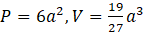 Dany jest wielościan, otrzymany przez wycięcie z sześcianu o długości krawędzi 𝑎 przy każdym z jego wierzchołków mniejszych sześcianów w taki sposób, że wszystkie krawędzie wynikowego wielościanu są sobie równe. Wyznacz objętość i pole powierzchni tak otrzymanej bryły.