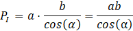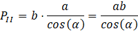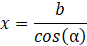 W przypadku płaszczyzny, w której zawarta jest krawędź 𝑎, drugi bok przekroju jest zawarty w prostej nachylonej pod kątem α do krawędzi długości 𝑏. Zauważ, że bok przekroju tworzy trójkąt prostokątny w ścianie bocznej prostopadłościanu. Oznacz długość boku przekroju, a jednocześnie przeciwprostokątnej trójkąta jako 𝑥. Mamy relację: