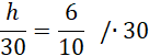 W tym zadaniu musisz obliczyć promień okręgu opisanego na trójkącie równoramiennym, którego sinus kąta przy podstawie wynosi 0,6, a jego ramię ma długość 30 cm.