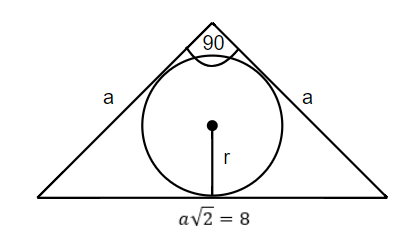 W tym zadaniu musisz obliczyć pole koła które zostało wpisane w trójkąt równoramienny, którego przeciwprostokątna ma długość 8cm.