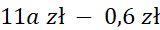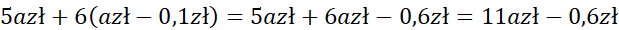 W tym zadaniu musisz obliczyć kwotę, jaką Zosia zapłaciła za swoje zakupy (5 zeszytów po a zł za sztukę i 6 zeszytów w cenie o 10 gr mniejszej od a zł).