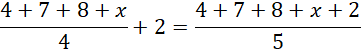 Wyznacz x, jeśli do zestawu danych 4, 7, 8, x dołączymy liczbę 2, to średnia arytmetyczna wzrośnie o 2.