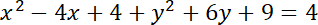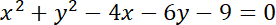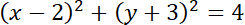 Zapisz równanie okręgu w postaci kierunkowej. Środek szukanego okręgu znajduje się w punkcie S – znajdź jego współrzędne. Zapisz równanie okręgu i przekształć je do postaci ogólnej.