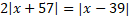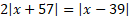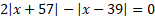 W tym zadaniu należy rozpatrzeć 3 przedziały. Miejscami zerowymi równania są liczby -57 oraz 39. W pierwszym przedziale obie wartości bezwzględne będą ujemne, w 2 przedziale pierwsza wartość bezwzględna jest dodatnia, a 2 ujemna, natomiast w 3 przedziale obie wartości są dodatnie. Sprawdź, czy wynik należy do przedziału. Zastanów się, która z liczb spełniających równanie jest najmniejsza. Po wykonaniu obliczeń n przyjmuje wartość -153. Teraz wystarczy obliczyć wartość bezwzględną z n i zakodować wynik.