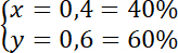 . Następnie własności podane w treści zadania zapisz za pomocą równań. Podane procenty zamień na ułamki dziesiętne. Zauważ, że powstanie układ dwóch równań z dwoma niewiadomymi. Z pierwszego równania w układzie równań wyznacz wartość